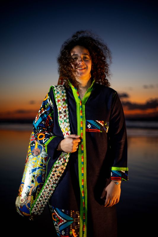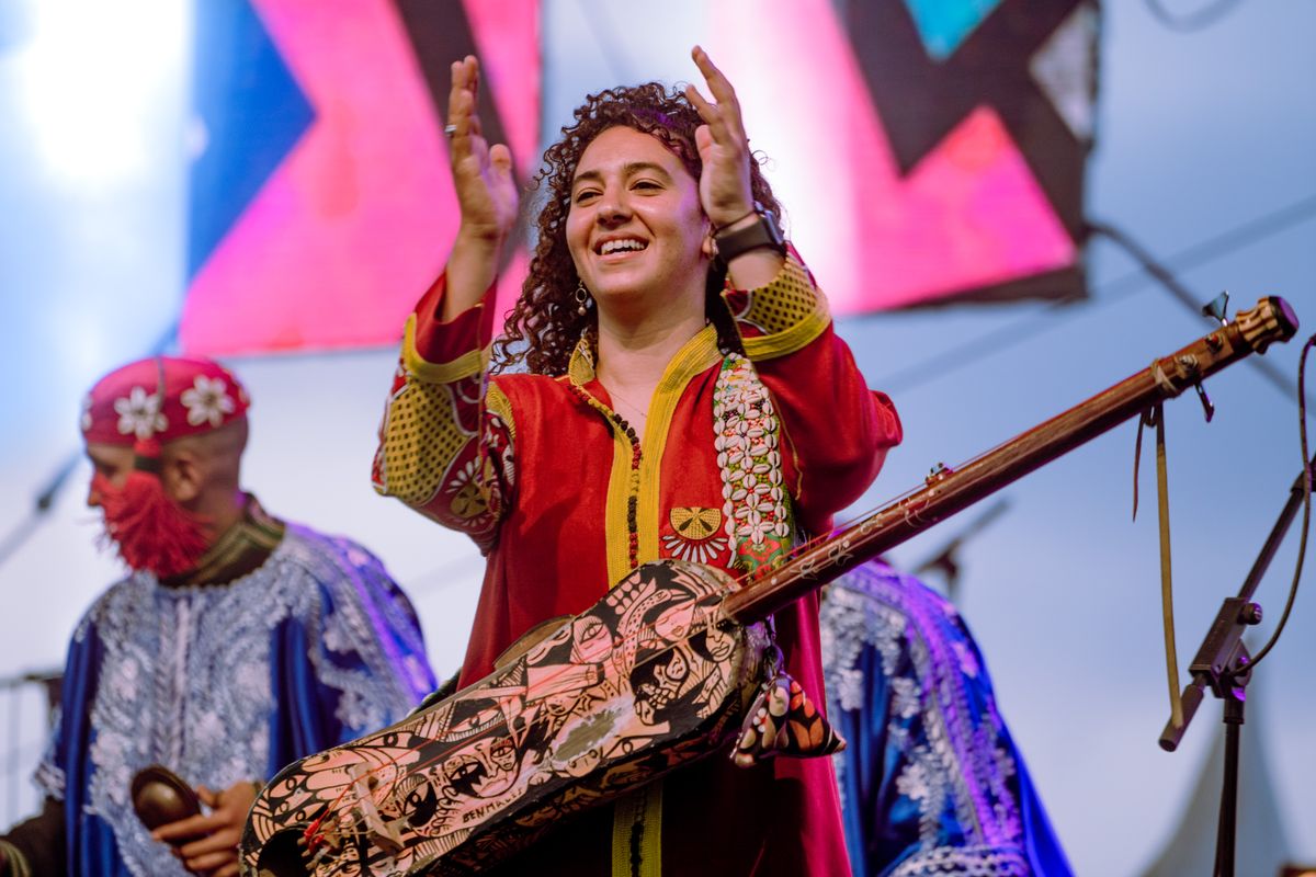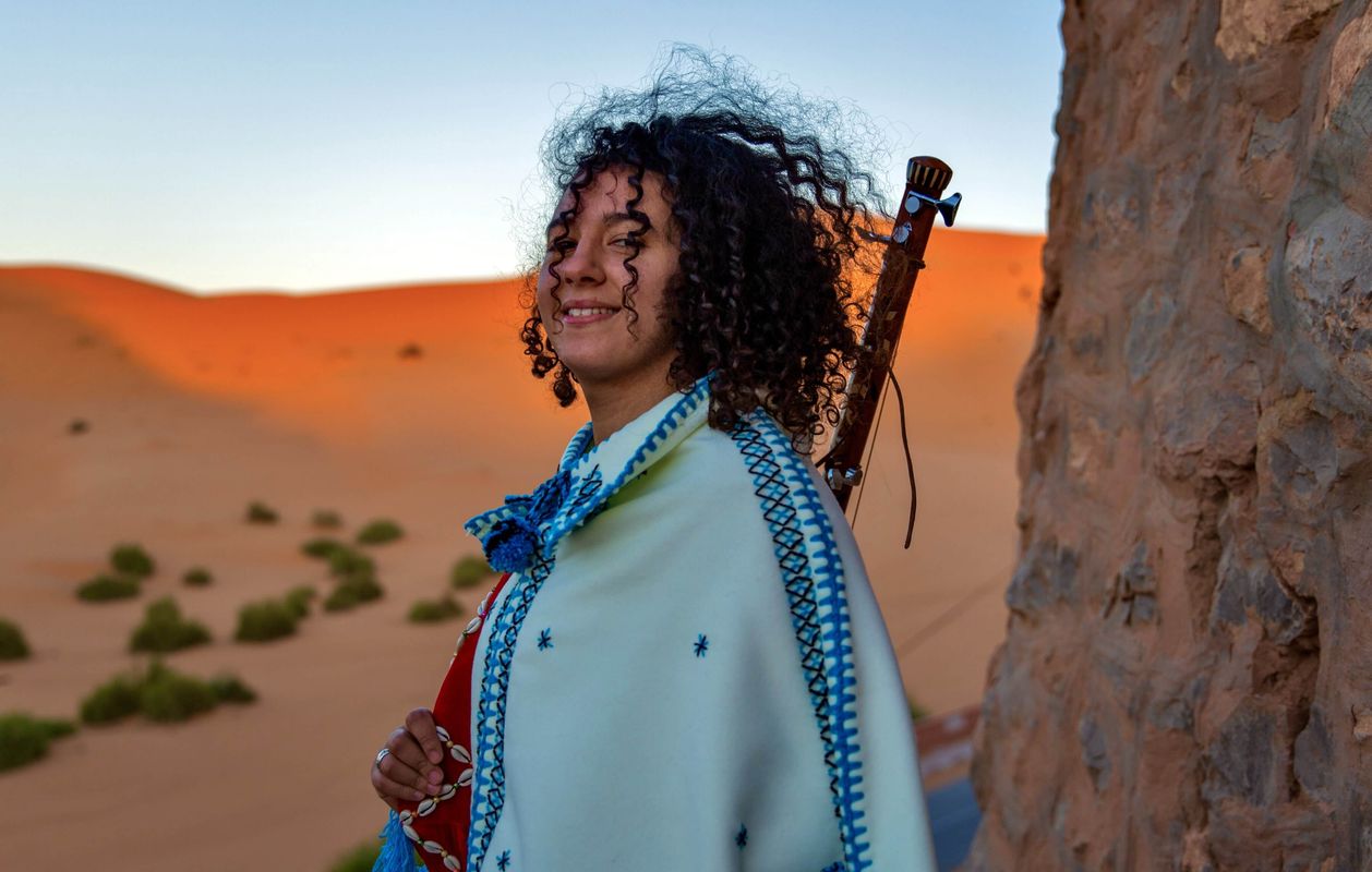 Hind Ennaira was born in Essaouira (Morocco), the cradle of Gnawa art, Afro-Moroccan and desert blues. At a very young age she immersed herself in this special music genre, a world that initially seemed to be accessible only to men. Today, as one of the two gnawiat, Hind dominates the Gnawa music scene. Playing on her Guembri instrument, she proves to the world that this traditional Moroccan folklore is also intended for women. She founded her own band with which she performs in Morocco and abroad. Hind is known as one of the 'maâlems' who draws full houses with her performances.