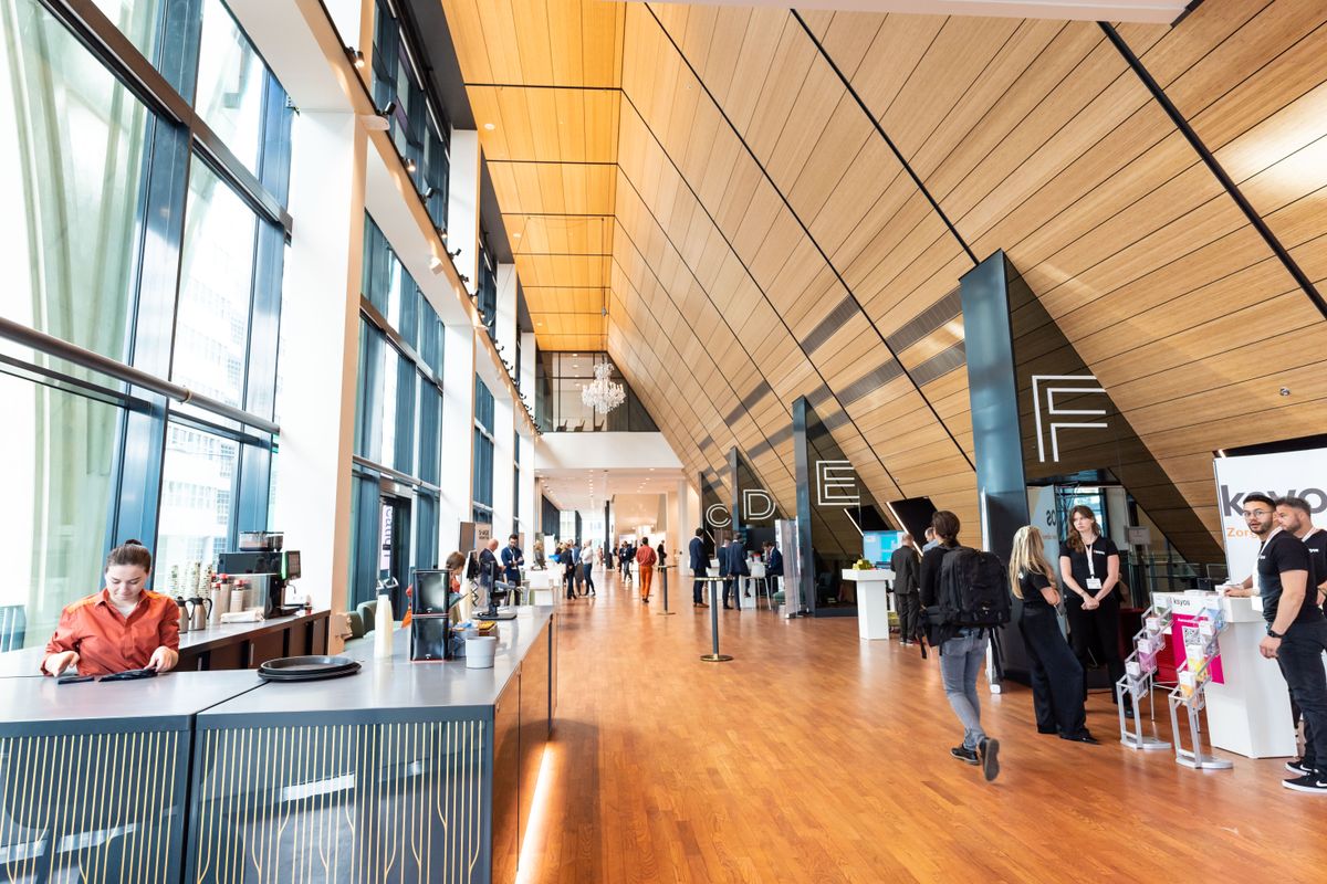 The Spinoza Foyer is available for rentals and for invitees of the Danstheater. It is located on the 1st floor, at the end of Foyer 1. The 1st floor can be reached by escalator, the four passenger lifts, or the Tribunetrap. The foyer has a level floor and has a wheelchair accessible toilet with an access of at least 90 cm wide.