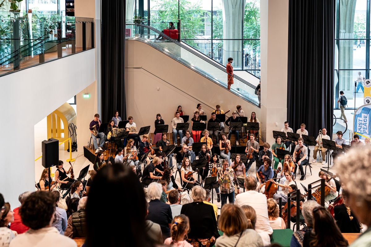 At the Kunstenplein, children were able make drawings about peace for a project by Colors for Peace. Stichting Denkroutes presented a new book “In Search of Peace – Jazzy & Bertha von Suttner”. On the 1st floor you could find the exhibition “Amal, this is my City”, by the residents of the former Ministry of Social Affairs (SOZA). In Filmhuis Den Haag people could watch the documentary The Mind Game, about the psychological pressure that young refugees are exposed to. And there were publicly accessible concerts by Scratchdag Latino, Misa Criolla and Constantijn Sinfonietta.