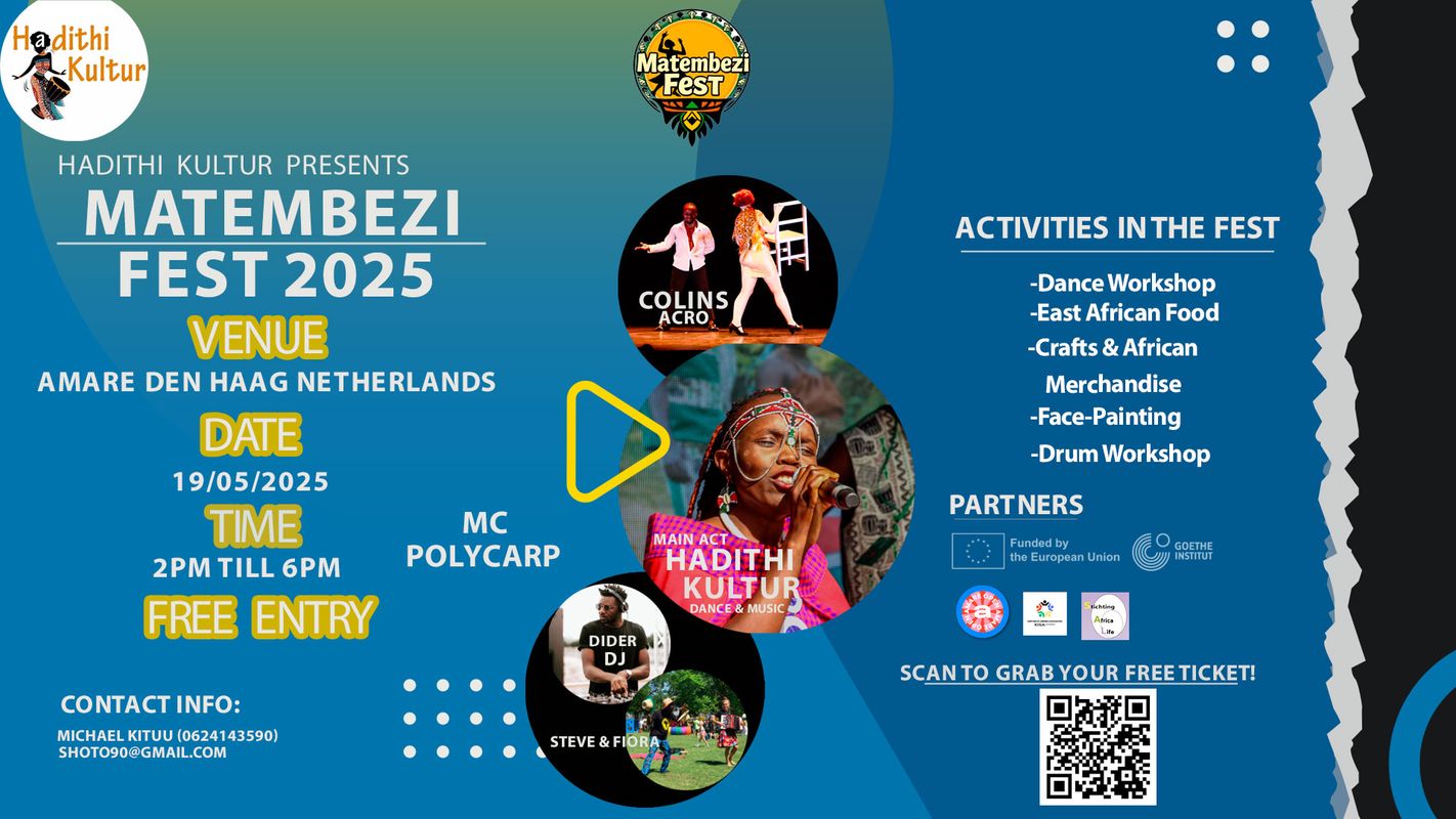 Matembezi Fest, een levendige integratie en viering van de Keniaanse cultuur in Nederland, vindt plaats op 19 april 2025 in Amare, Den Haag. Het evenement omvat traditionele dans, muziek, acrobatiek, interactieve workshops, culturele showcases, schminken en verhalen vertellen. Bezoekers kunnen genieten van authentieke Keniaanse en Oost-Afrikaanse gerechten en ambachtelijke kraampjes verkennen. Matembezi Fest biedt een dynamisch platform om het rijke erfgoed van Kenia in Nederland te ervaren en te vieren.