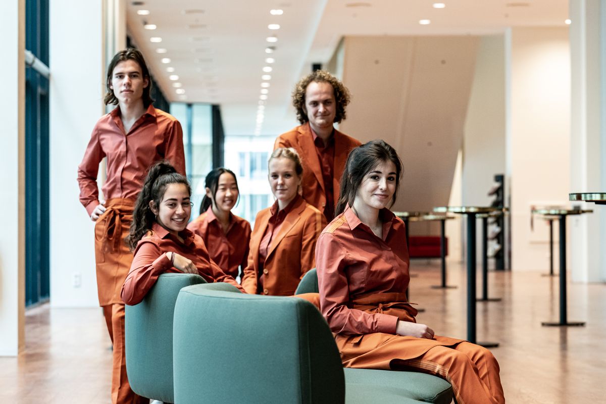 De Haagse modeontwerper Michael Barnaart koos voor stijlvolle en duurzame kleding in duidelijk herkenbare unikleuren. Bovendien is de collectie ‘genderneutraal’: op het oog loopt iedereen in dezelfde soort kleding. De uitvoering van de ontwerpen was in handen van Annet Kroll en SUIT UP. Deze maand werd de kleding voor het eerst gepresenteerd in het gebouw van Amare. Swipe naar rechts om alle foto's te bekijken >