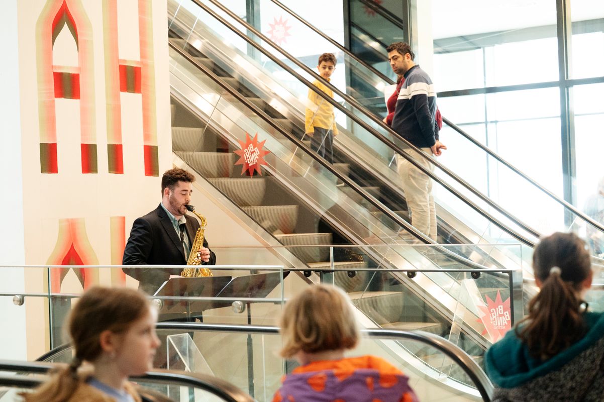 Zoveel enthousiaste kleine én grote muziekliefhebbers. Bezoekers waren niet alleen toeschouwer, maar vooral ook deelnemer - precies waar BIG BANG voor staat: muziek, actie en beleving. Een greep uit het programma: Blaaskaak zette de Tribunetrap op stelten met energieke covers van bekende hits, van Doe Maar tot andere favorieten. De Sound Explorers brachten muziek op een verrassende manier tot leven, terwijl een BMX-act door de Conservatoriumzaal indruk maakte met spectaculaire moves op cellomuziek.