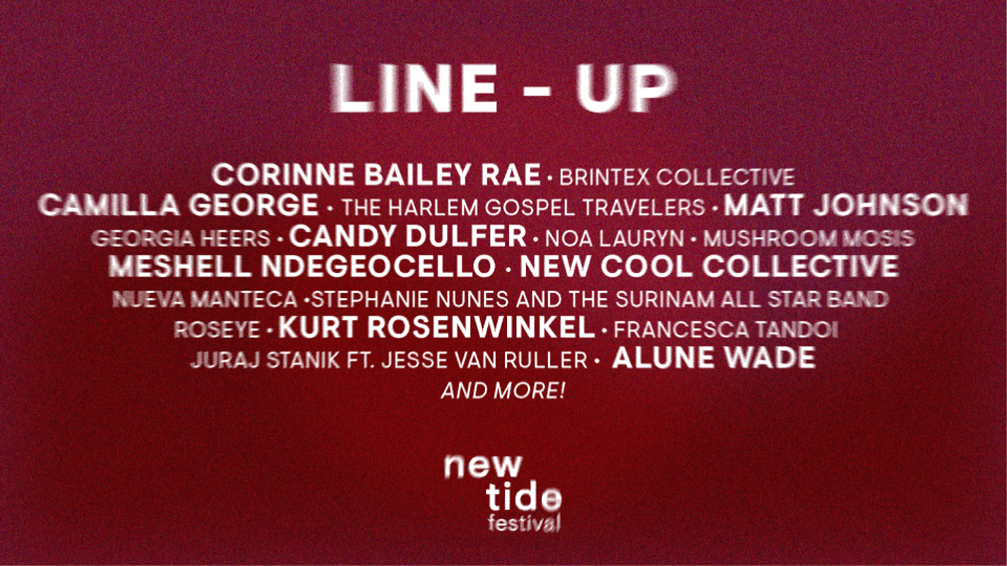 Corinne Bailey Rae / Meshell Ndegeocello / Candy Dulfer / Kurt Rosenwinkel / Camilla George / New Cool Collective / Matt Johnson / Alune Wade / The Harlem Gospel Travelers / Nueva Manteca / Francesca Tandoi / Georgia Heers / Brintex Collective / Noa Lauryn / Juraj Stanik ft. Jesse van Ruller / ROSEYE / Mushroom Mosis / Stephanie Nunes and the Surinam All Stars Band