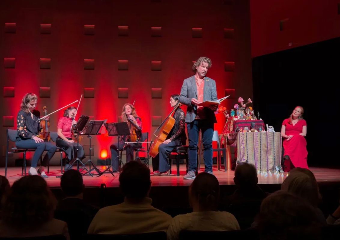 Sopraan Klaartje van Veldhoven, het Hermitage Kwartet en Jibbe Willems nemen het publiek mee op een intieme en betekenisvolle muzikale reis, waarin muziek troost biedt, woorden raken en stilte verbindt. Een avond om samen te voelen, te luisteren en te delen — een ode aan wie we verloren hebben, en een sprankje hoop voor morgen.